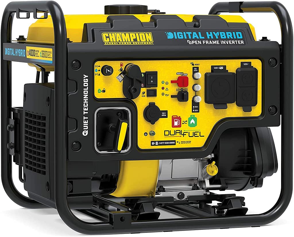 This digital hybrid generator is 50% quieter easily switch with a quick turn of the fuel select dial and 20% lighter than a traditional champion 35-watt generator.
